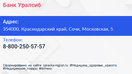 Банк Уралсиб по адресу 354000, Краснодарский край, Сочи, Московская, 5 в дальнейшем Организация, размещена в следующих категориях: