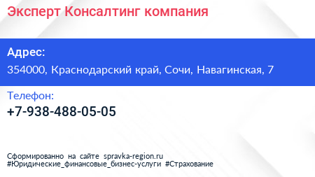 Эксперт Консалтинг, компания по адресу 354000, Краснодарский край, Сочи, Навагинская, 7 в дальнейшем Организация, размещена в следующих категориях: