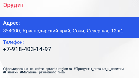 Эрудит по адресу 354000, Краснодарский край, Сочи, Северная, 12 к1 в дальнейшем Организация, размещена в следующих категориях: