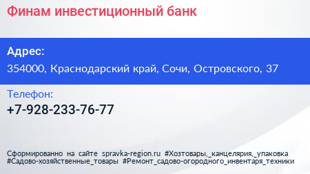 Финам, инвестиционный банк по адресу 354000, Краснодарский край, Сочи, Островского, 37 в дальнейшем Организация, размещена в следующих категориях: