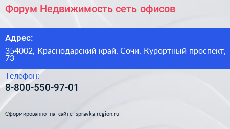 Форум Недвижимость, сеть офисов по адресу 354002, Краснодарский край, Сочи, Курортный проспект, 73 в дальнейшем Организация, размещена в следующих категориях: