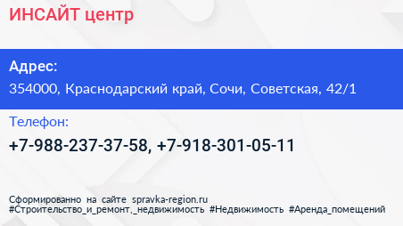 ИНСАЙТ, центр по адресу 354000, Краснодарский край, Сочи, Советская, 42/1 в дальнейшем Организация, размещена в следующих категориях: