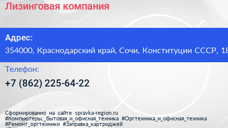 Лизинговая компания по адресу 354000, Краснодарский край, Сочи, Конституции СССР, 18 в дальнейшем Организация, размещена в следующих категориях:
