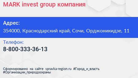 MARK invest group, компания по адресу 354000, Краснодарский край, Сочи, Орджоникидзе, 11 в дальнейшем Организация, размещена в следующих категориях: