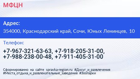 МФЦН по адресу 354000, Краснодарский край, Сочи, Юных Ленинцев, 10 в дальнейшем Организация, размещена в следующих категориях: