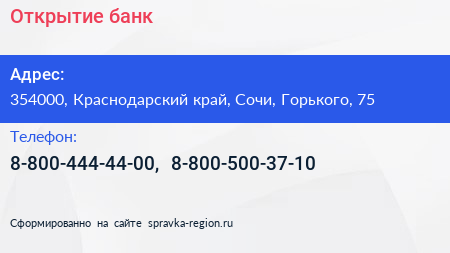 Открытие, банк по адресу 354000, Краснодарский край, Сочи, Горького, 75 в дальнейшем Организация, размещена в следующих категориях: