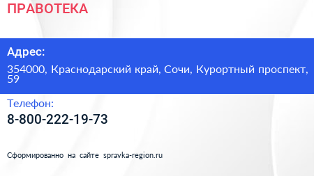 ПРАВОТЕКА по адресу 354000, Краснодарский край, Сочи, Курортный проспект, 59 в дальнейшем Организация, размещена в следующих категориях:
