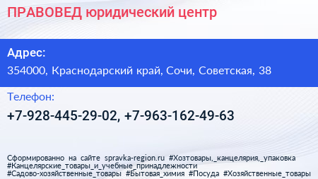 ПРАВОВЕД, юридический центр по адресу 354000, Краснодарский край, Сочи, Советская, 38 в дальнейшем Организация, размещена в следующих категориях:
