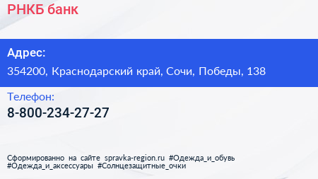 РНКБ, банк по адресу 354200, Краснодарский край, Сочи, Победы, 138 в дальнейшем Организация, размещена в следующих категориях: