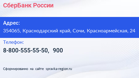 СберБанк России по адресу 354065, Краснодарский край, Сочи, Красноармейская, 24 в дальнейшем Организация, размещена в следующих категориях: