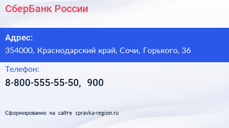 СберБанк России по адресу 354000, Краснодарский край, Сочи, Горького, 36 в дальнейшем Организация, размещена в следующих категориях: