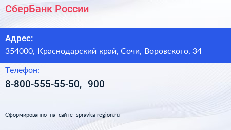 СберБанк России по адресу 354000, Краснодарский край, Сочи, Воровского, 34 в дальнейшем Организация, размещена в следующих категориях: