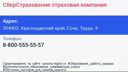 СберСтрахование, страховая компания по адресу 354003, Краснодарский край, Сочи, Труда, 4 в дальнейшем Организация, размещена в следующих категориях: