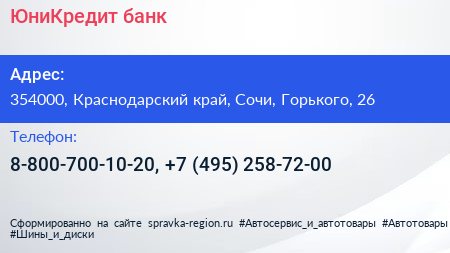 ЮниКредит банк по адресу 354000, Краснодарский край, Сочи, Горького, 26 в дальнейшем Организация, размещена в следующих категориях: