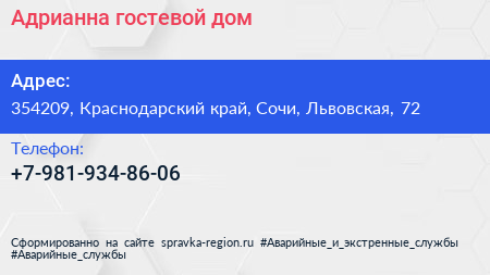 Адрианна, гостевой дом по адресу 354209, Краснодарский край, Сочи, Львовская, 72 в дальнейшем Организация, размещена в следующих категориях: