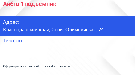 Аибга 1, подъемник по адресу Краснодарский край, Сочи, Олимпийская, 24 в дальнейшем Организация, размещена в следующих категориях: