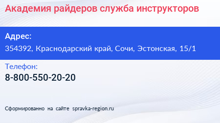Академия райдеров, служба инструкторов по адресу 354392, Краснодарский край, Сочи, Эстонская, 15/1 в дальнейшем Организация, размещена в следующих категориях:
