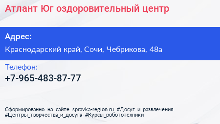 Атлант-Юг, оздоровительный центр по адресу Краснодарский край, Сочи, Чебрикова, 48а в дальнейшем Организация, размещена в следующих категориях: