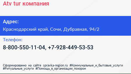 Atv-tur, компания по адресу Краснодарский край, Сочи, Дубравная, 94/2 в дальнейшем Организация, размещена в следующих категориях: