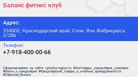 Баланс, фитнес-клуб по адресу 354002, Краснодарский край, Сочи, Яна Фабрициуса, 2/28а в дальнейшем Организация, размещена в следующих категориях: