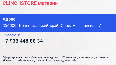 CLINCHSTORE, магазин по адресу 354000, Краснодарский край, Сочи, Навагинская, 7 в дальнейшем Организация, размещена в следующих категориях: