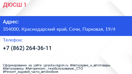 ДЮСШ №1 по адресу 354000, Краснодарский край, Сочи, Парковая, 19/4 в дальнейшем Организация, размещена в следующих категориях: