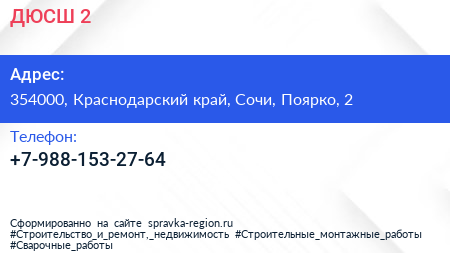 ДЮСШ №2 по адресу 354000, Краснодарский край, Сочи, Поярко, 2 в дальнейшем Организация, размещена в следующих категориях:
