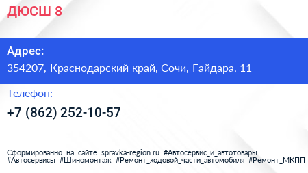 ДЮСШ №8 по адресу 354207, Краснодарский край, Сочи, Гайдара, 11 в дальнейшем Организация, размещена в следующих категориях: