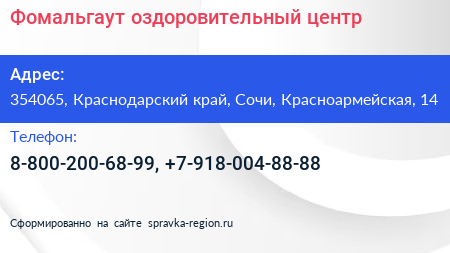 Фомальгаут, оздоровительный центр по адресу 354065, Краснодарский край, Сочи, Красноармейская, 14 в дальнейшем Организация, размещена в следующих категориях: