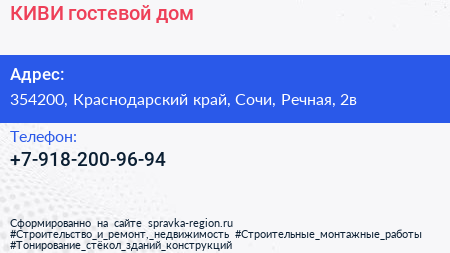 КИВИ, гостевой дом по адресу 354200, Краснодарский край, Сочи, Речная, 2в в дальнейшем Организация, размещена в следующих категориях:
