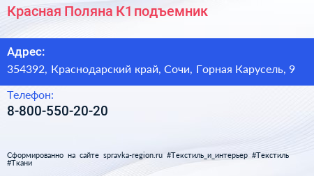 Красная Поляна К1, подъемник по адресу 354392, Краснодарский край, Сочи, Горная Карусель, 9 в дальнейшем Организация, размещена в следующих категориях: