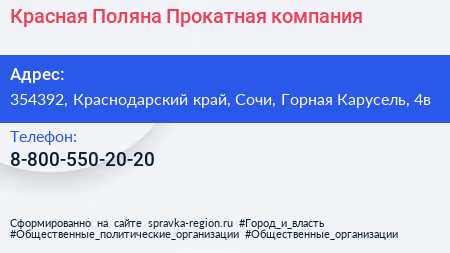Красная Поляна, Прокатная компания по адресу 354392, Краснодарский край, Сочи, Горная Карусель, 4в в дальнейшем Организация, размещена в следующих категориях: