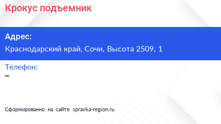 Крокус, подъемник по адресу Краснодарский край, Сочи, Высота 2509, 1 в дальнейшем Организация, размещена в следующих категориях: