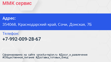 ММК-сервис по адресу 354068, Краснодарский край, Сочи, Донская, 7Б в дальнейшем Организация, размещена в следующих категориях: