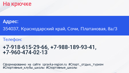 На крючке по адресу 354037, Краснодарский край, Сочи, Платановая, 8а/3 в дальнейшем Организация, размещена в следующих категориях: