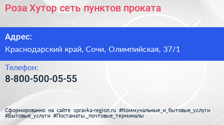Роза Хутор, сеть пунктов проката по адресу Краснодарский край, Сочи, Олимпийская, 37/1 в дальнейшем Организация, размещена в следующих категориях: