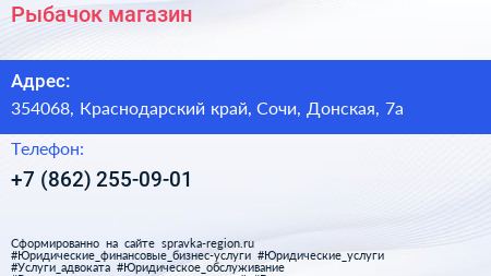 Рыбачок, магазин по адресу 354068, Краснодарский край, Сочи, Донская, 7а в дальнейшем Организация, размещена в следующих категориях: