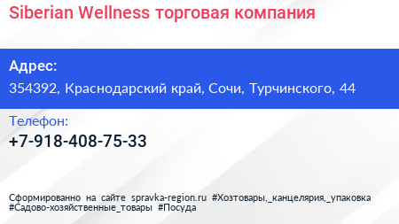 Siberian Wellness, торговая компания по адресу 354392, Краснодарский край, Сочи, Турчинского, 44 в дальнейшем Организация, размещена в следующих категориях: