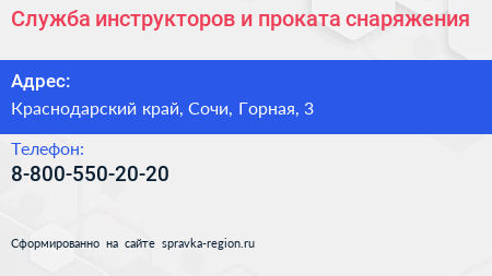 Служба инструкторов и проката снаряжения по адресу Краснодарский край, Сочи, Горная, 3 в дальнейшем Организация, размещена в следующих категориях: