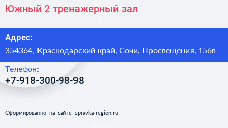 Южный-2, тренажерный зал по адресу 354364, Краснодарский край, Сочи, Просвещения, 156в в дальнейшем Организация, размещена в следующих категориях: