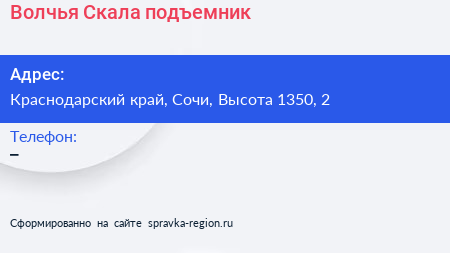 Волчья Скала, подъемник по адресу Краснодарский край, Сочи, Высота 1350, 2 в дальнейшем Организация, размещена в следующих категориях: