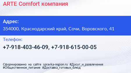 ARTE Comfort, компания по адресу 354000, Краснодарский край, Сочи, Воровского, 41 в дальнейшем Организация, размещена в следующих категориях: