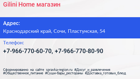 Gilini Home, магазин по адресу Краснодарский край, Сочи, Пластунская, 54 в дальнейшем Организация, размещена в следующих категориях: