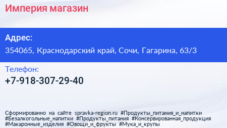 Империя, магазин по адресу 354065, Краснодарский край, Сочи, Гагарина, 63/3 в дальнейшем Организация, размещена в следующих категориях: