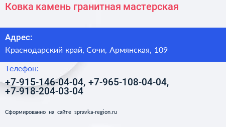 Ковка камень, гранитная мастерская по адресу Краснодарский край, Сочи, Армянская, 109 в дальнейшем Организация, размещена в следующих категориях: