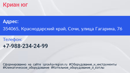 Криан-юг по адресу 354065, Краснодарский край, Сочи, улица Гагарина, 76 в дальнейшем Организация, размещена в следующих категориях: