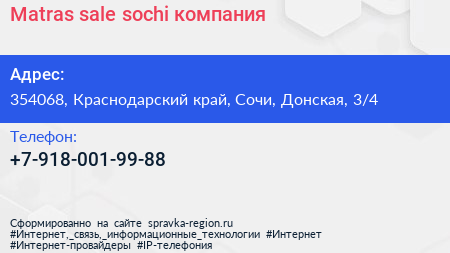 Matras sale sochi, компания по адресу 354068, Краснодарский край, Сочи, Донская, 3/4 в дальнейшем Организация, размещена в следующих категориях: