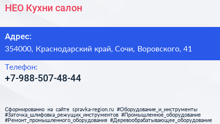 НЕО Кухни, салон по адресу 354000, Краснодарский край, Сочи, Воровского, 41 в дальнейшем Организация, размещена в следующих категориях: