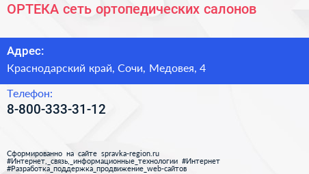 ОРТЕКА, сеть ортопедических салонов по адресу Краснодарский край, Сочи, Медовея, 4 в дальнейшем Организация, размещена в следующих категориях: