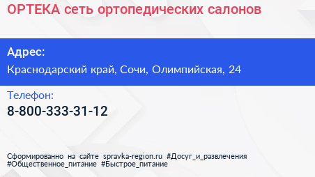 ОРТЕКА, сеть ортопедических салонов по адресу Краснодарский край, Сочи, Олимпийская, 24 в дальнейшем Организация, размещена в следующих категориях: